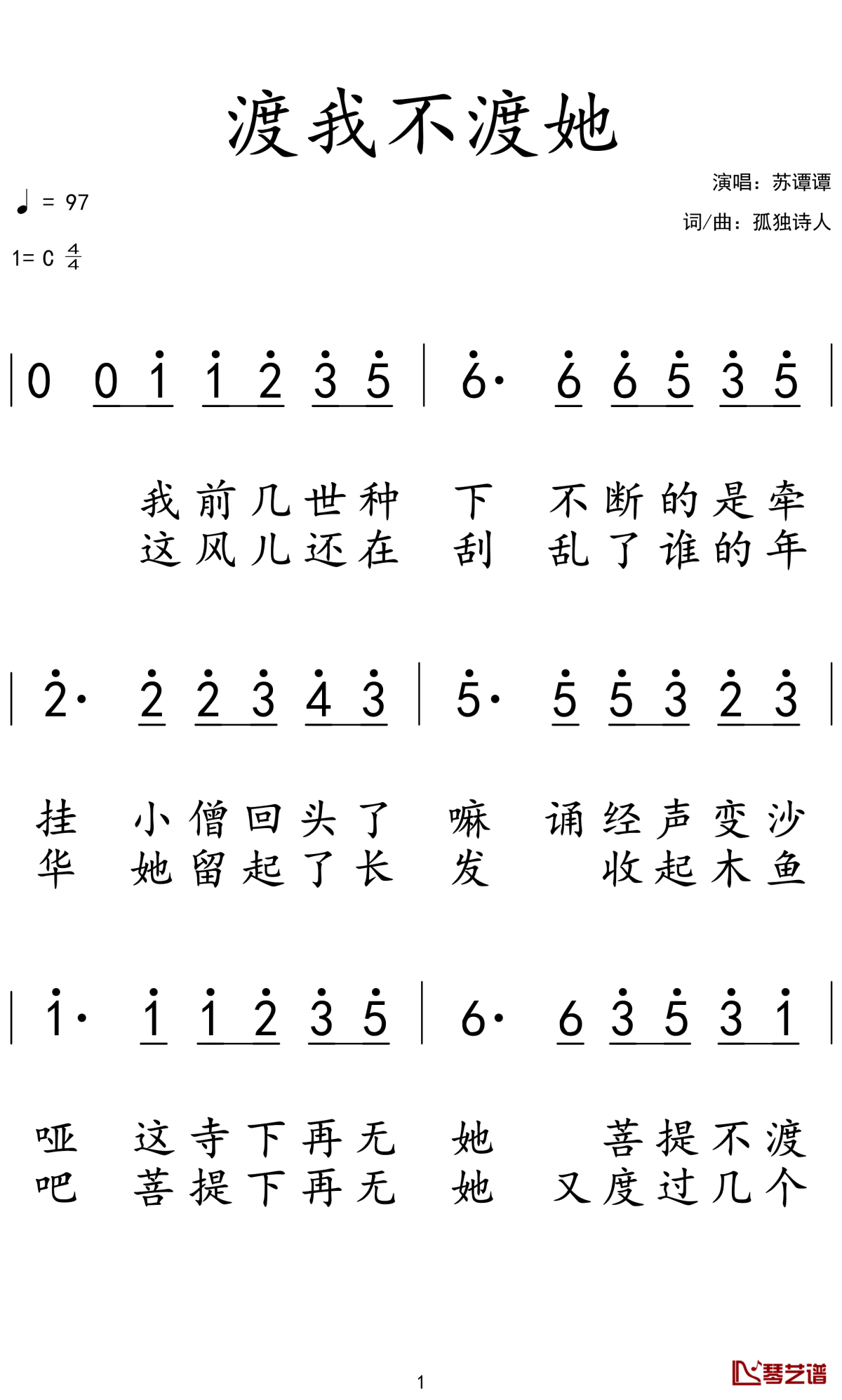 《渡我不渡她》简谱...