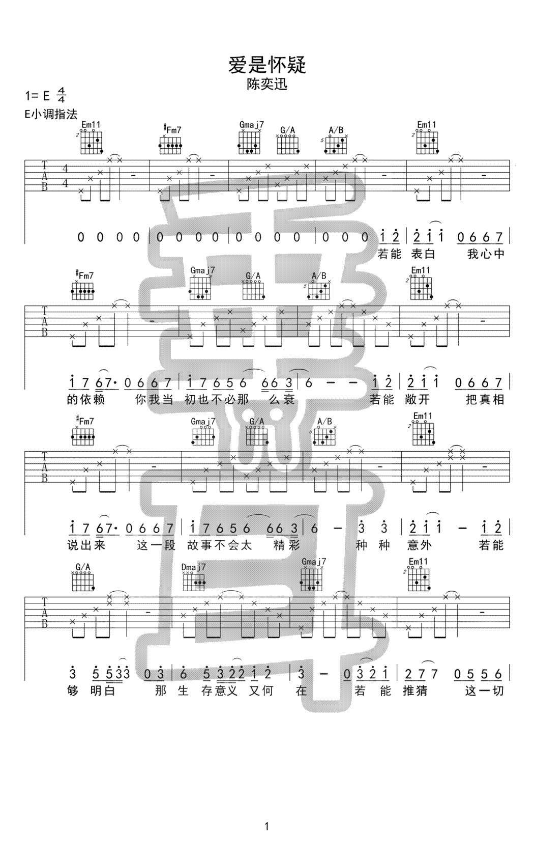 吉他陈奕迅《爱是怀疑》吉他谱_吉他弹唱谱_垂耳吉他编配