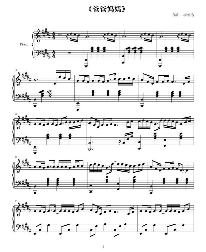 钢琴爸爸妈妈钢琴谱