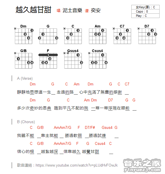 吉他盛晓玫《越久越甘甜》吉他谱_吉他弹唱谱_YYZJ编配