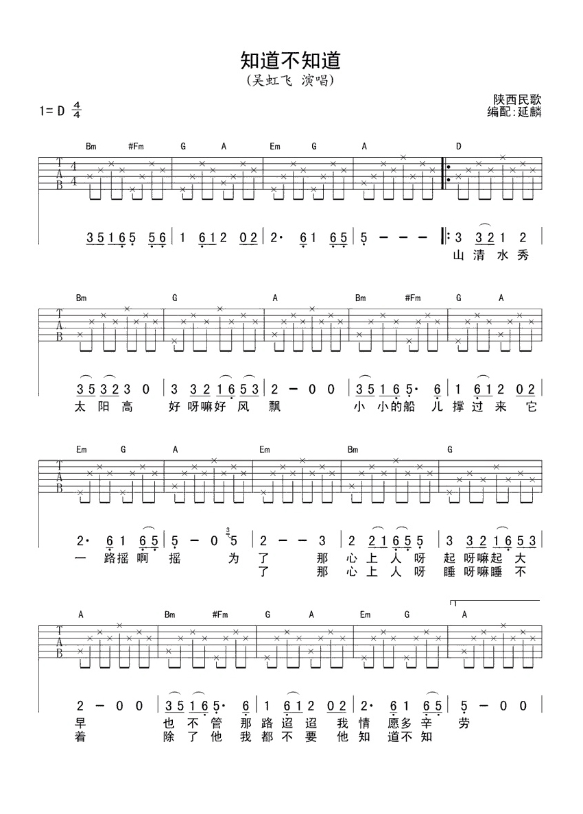 吉他吴虹飞《知道不知道》吉他谱_吉他弹唱谱_延麟编配