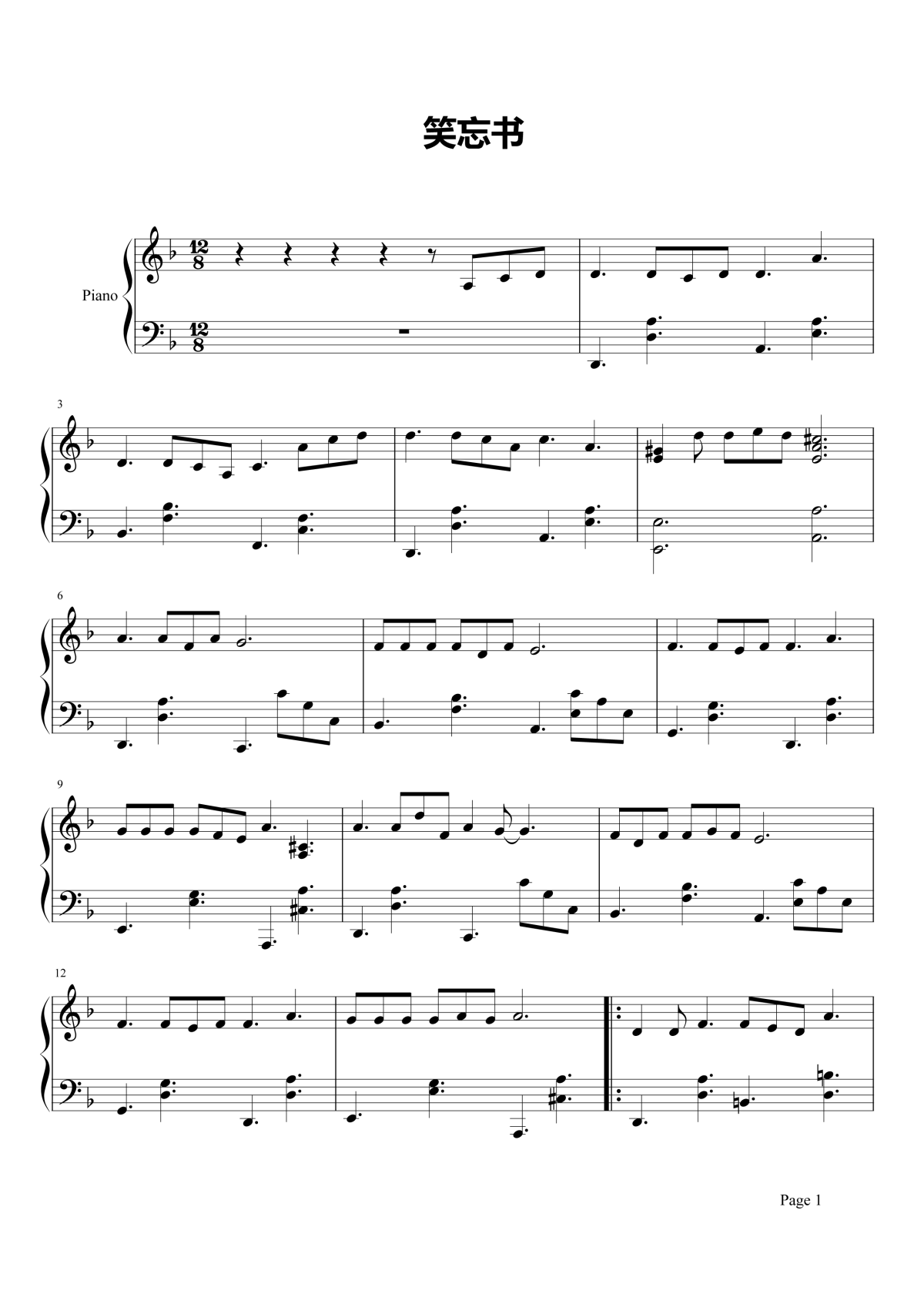 关于笑忘书的曲谱