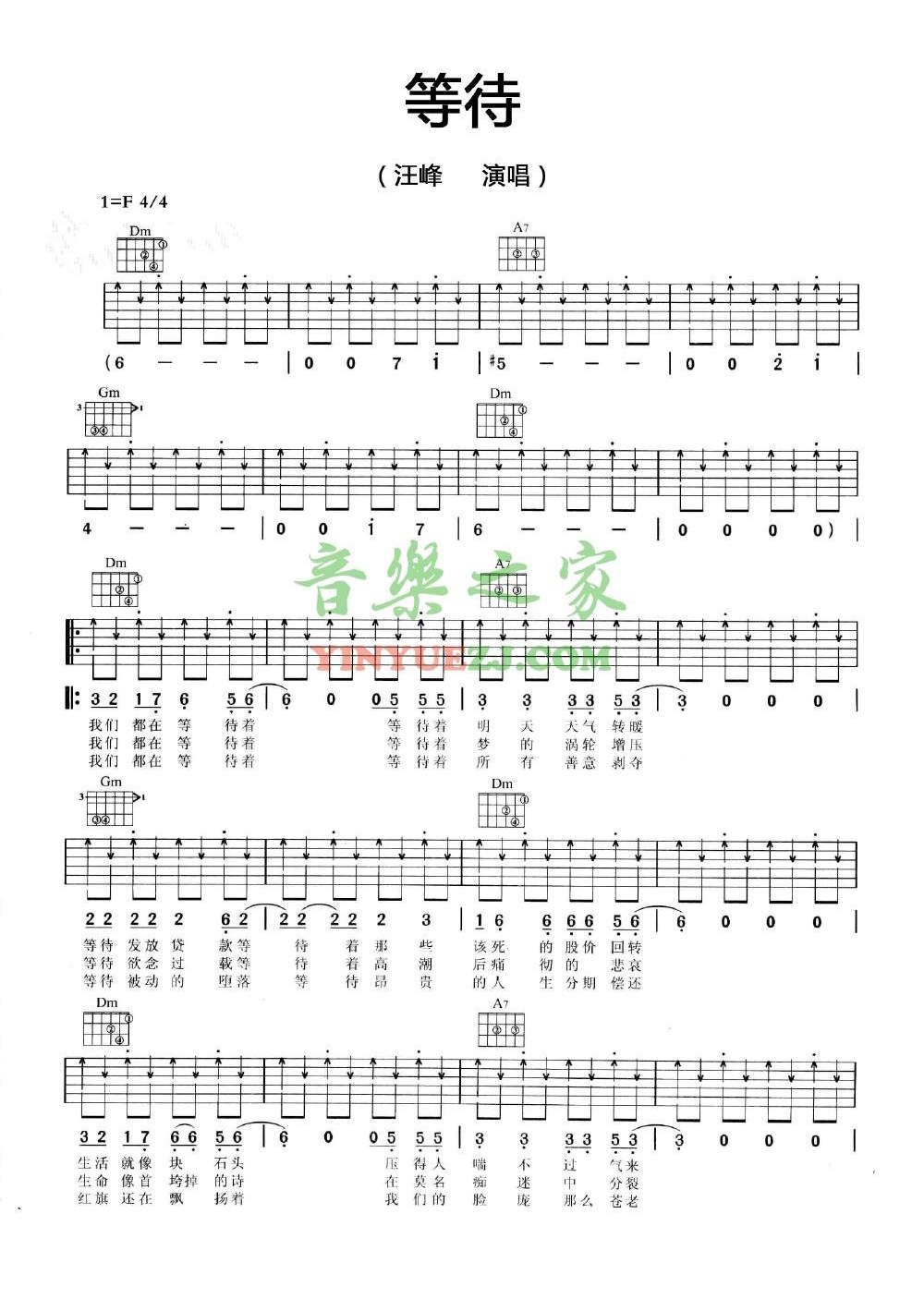 吉他汪峰《等待》吉他谱_吉他弹唱谱