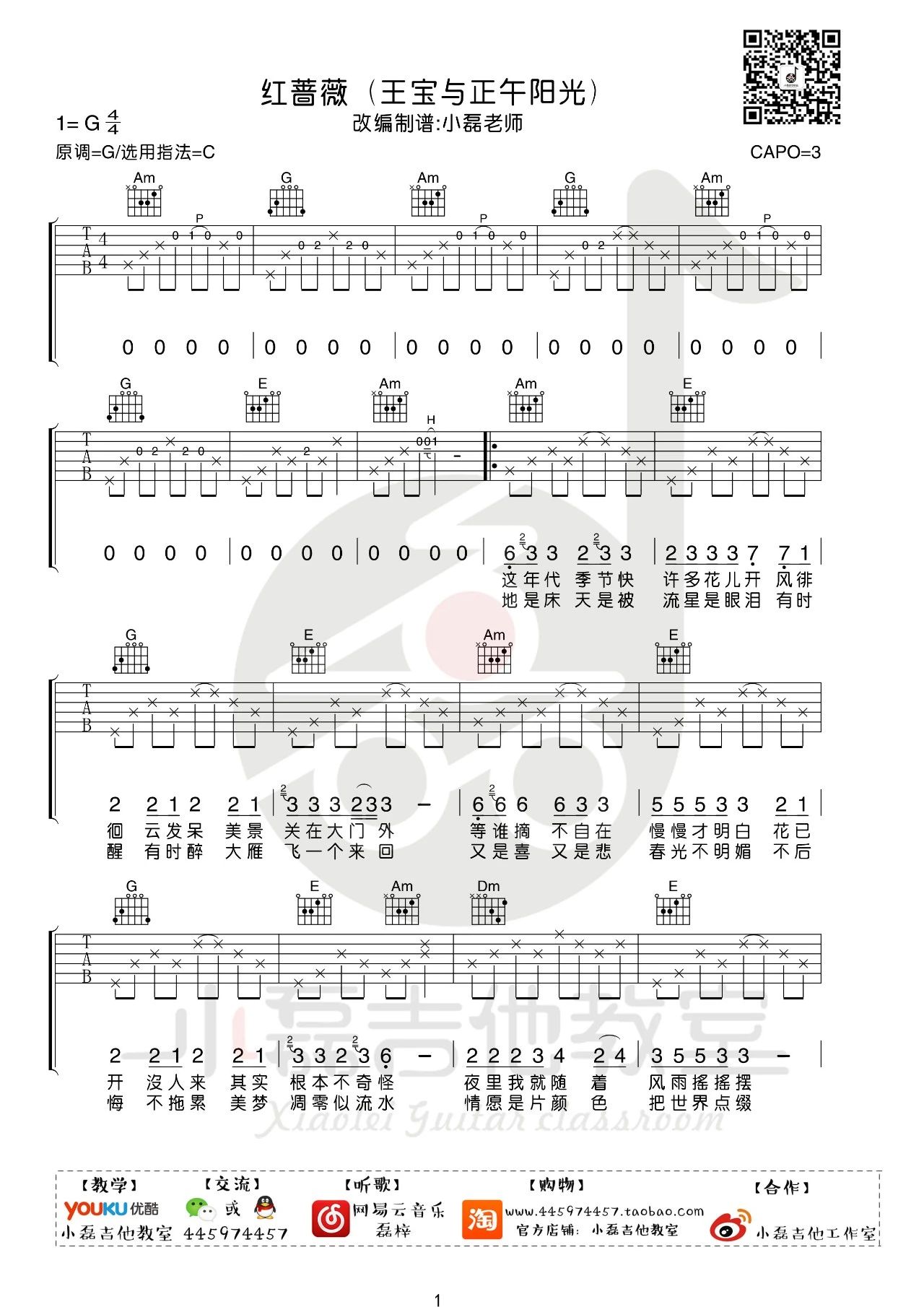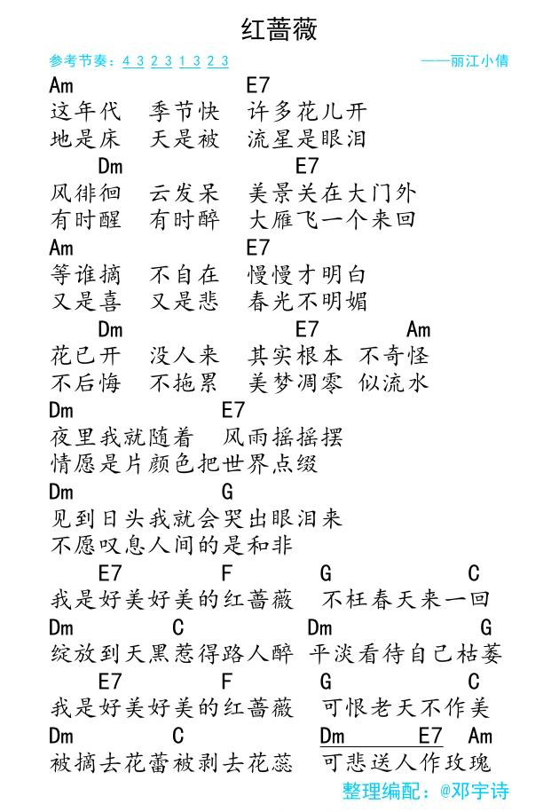吉他《红蔷薇》吉他谱_丽江小倩/韩红