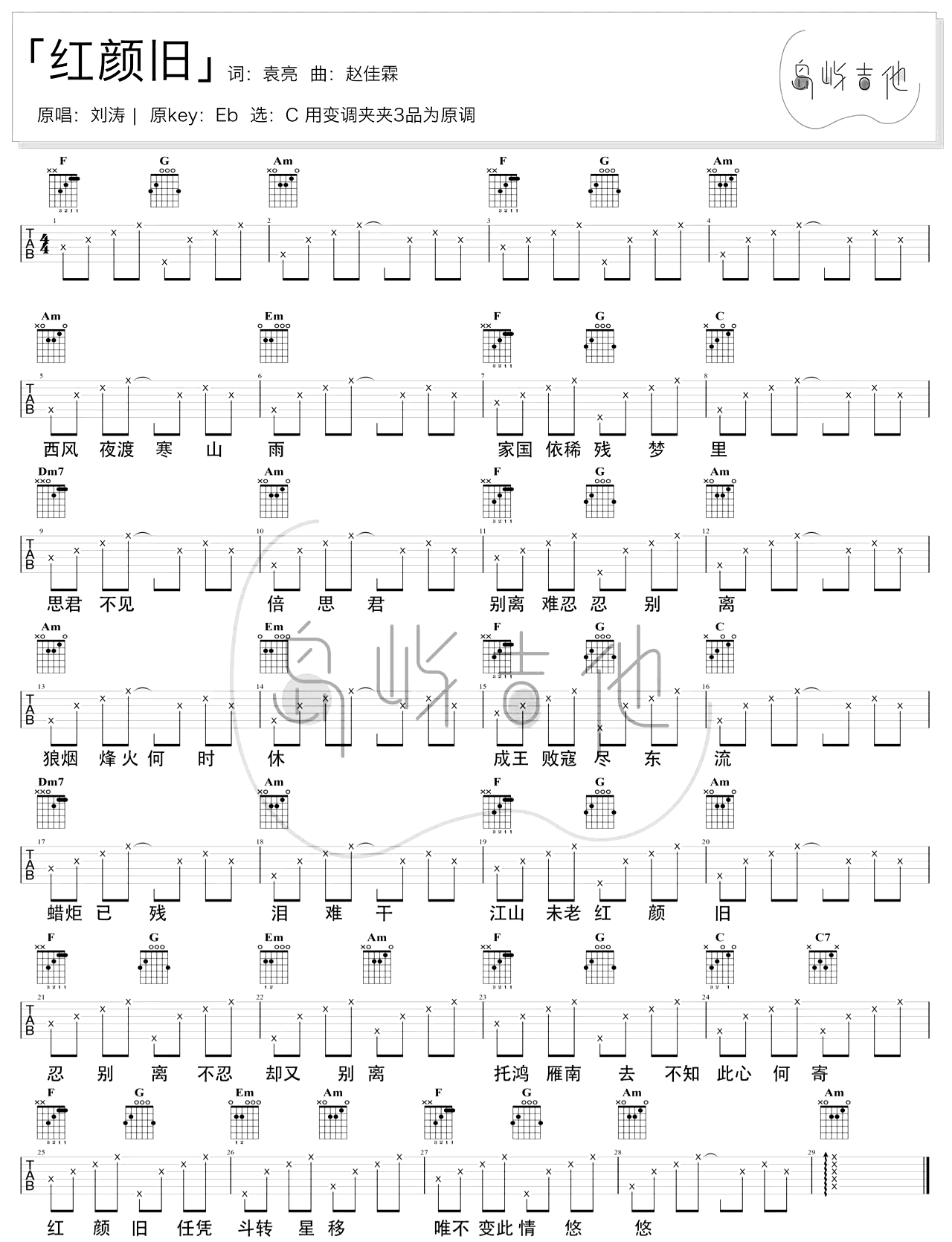 关于红颜旧的曲谱