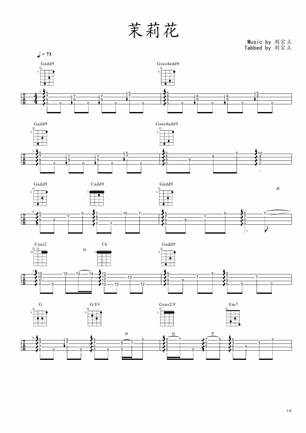 《茉莉花》尤克里里谱,共有6张高清图谱。...