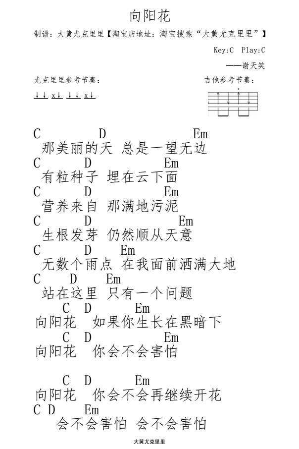 尤克里里谢天笑《向阳花》尤克里里谱