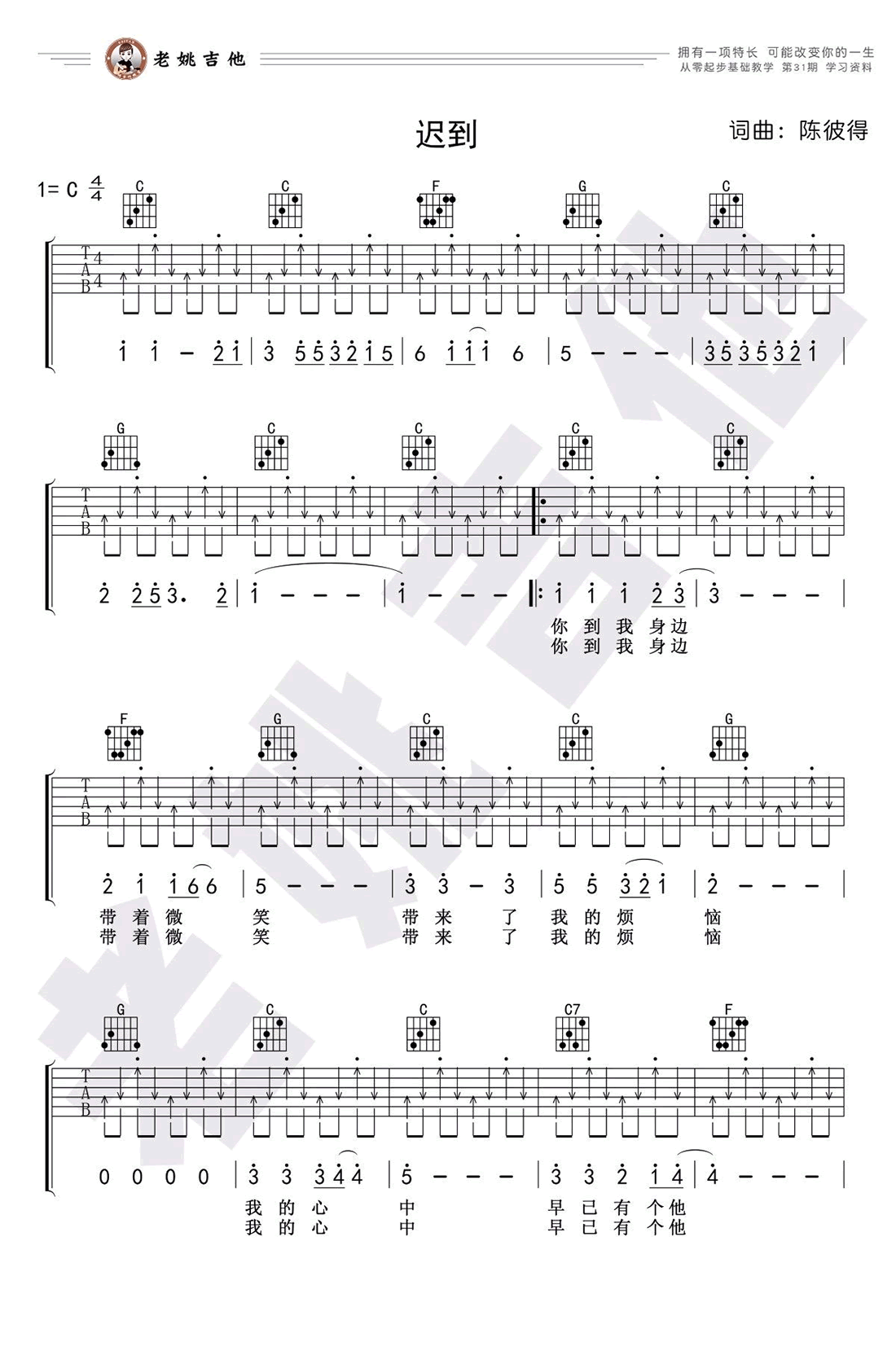 吉他刘文正《迟到》吉他谱_吉他弹唱谱_老姚吉他编配