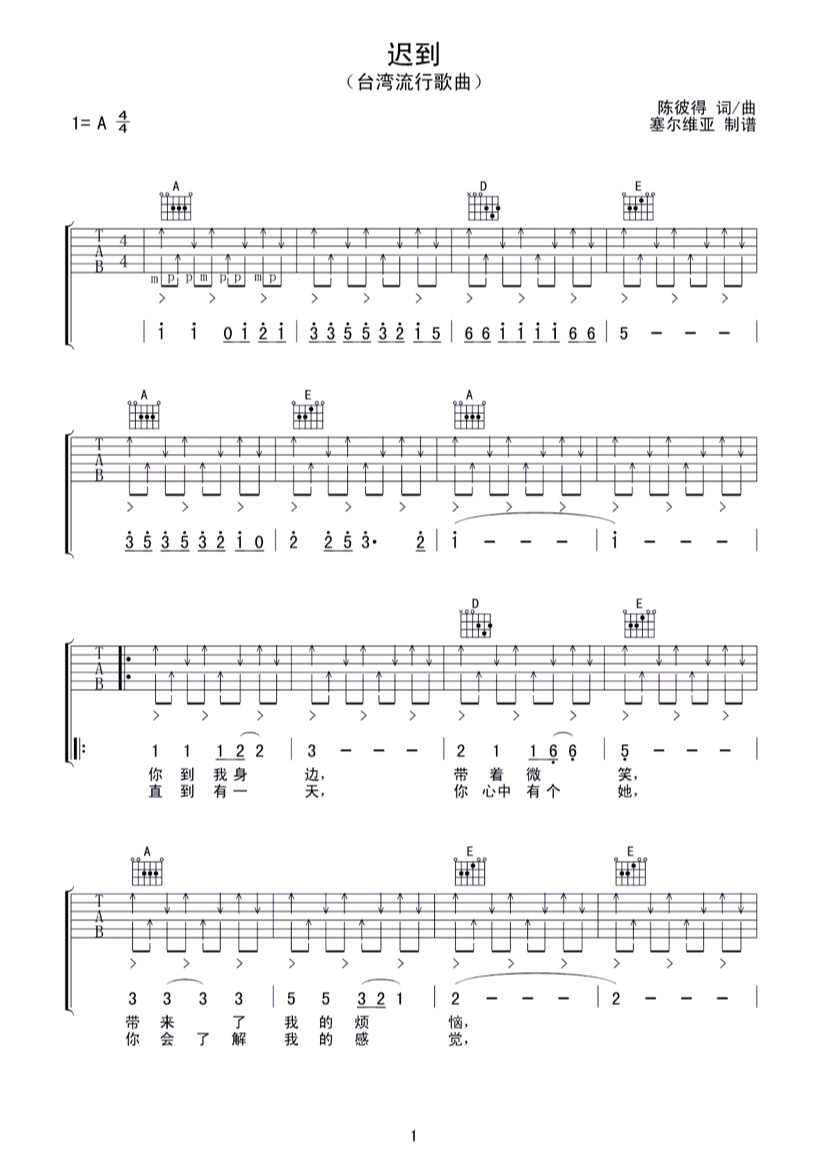 吉他刘文正《迟到》吉他谱_吉他弹唱谱
