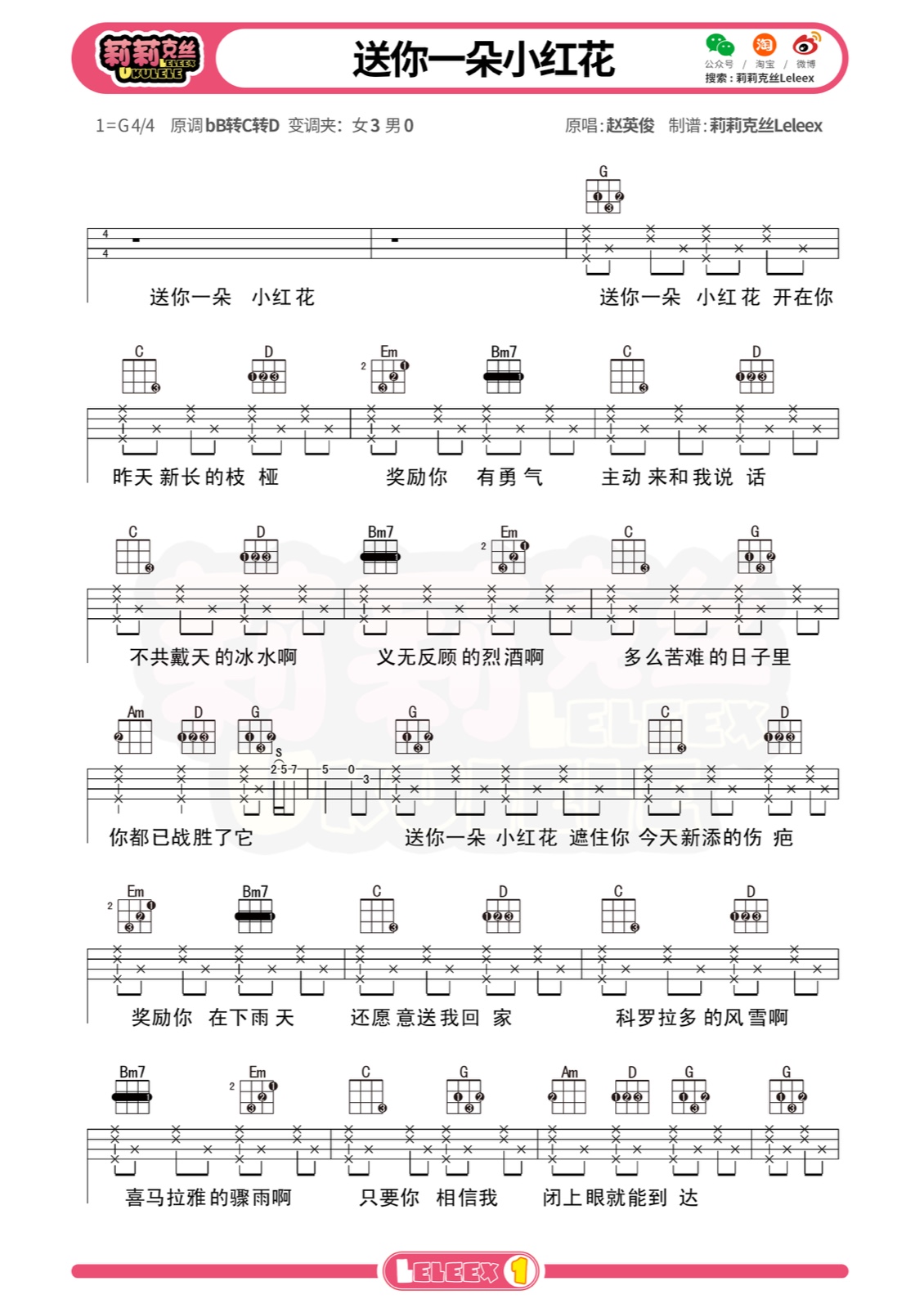 _赵英俊《送你一朵小红花》吉他谱G转A转B中级版_赵英俊...
