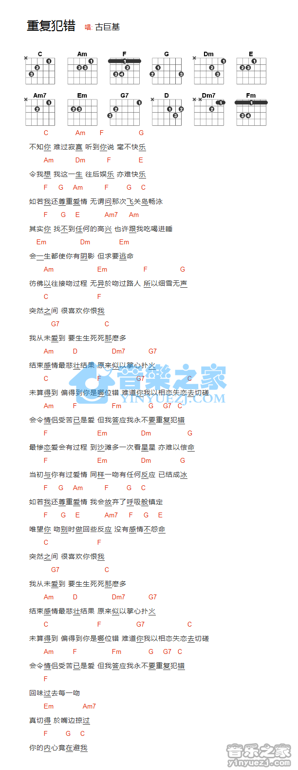 关于重复犯错的曲谱