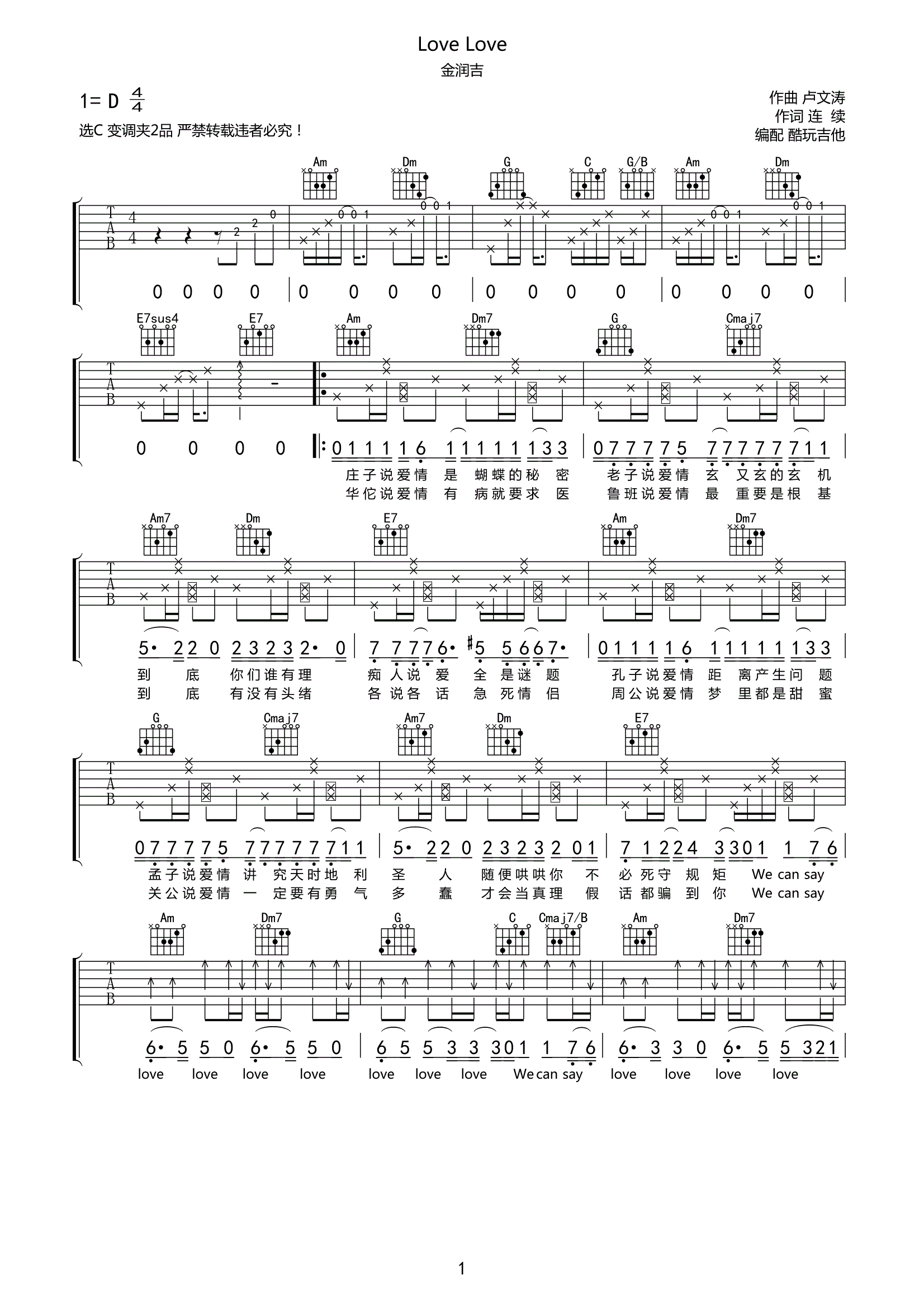 吉他金润吉《love love》吉他谱-C调弹唱谱(双世宠妃主题曲)