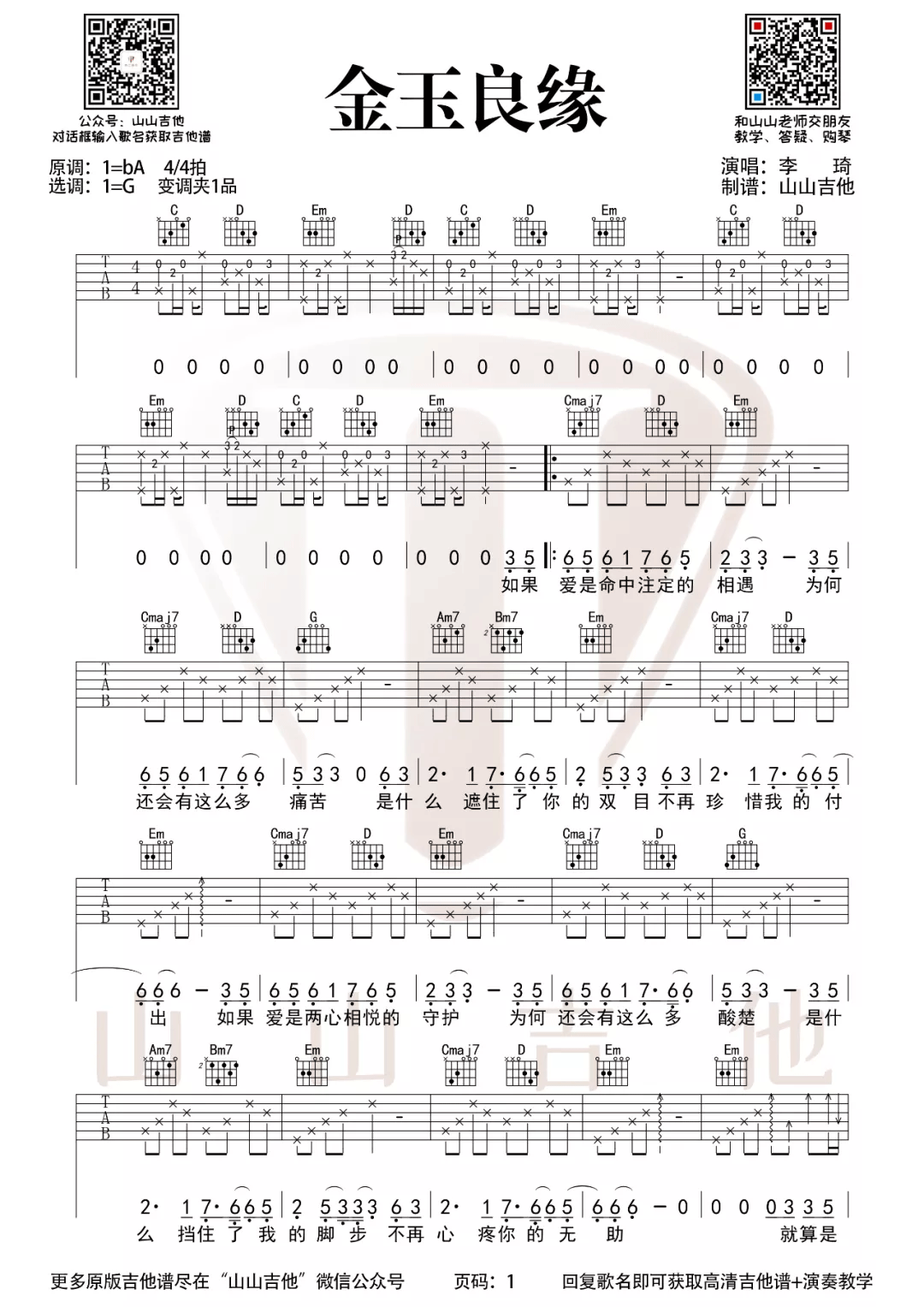 《金玉良缘》吉他谱_付雪/李琦_G调弹唱六线谱...