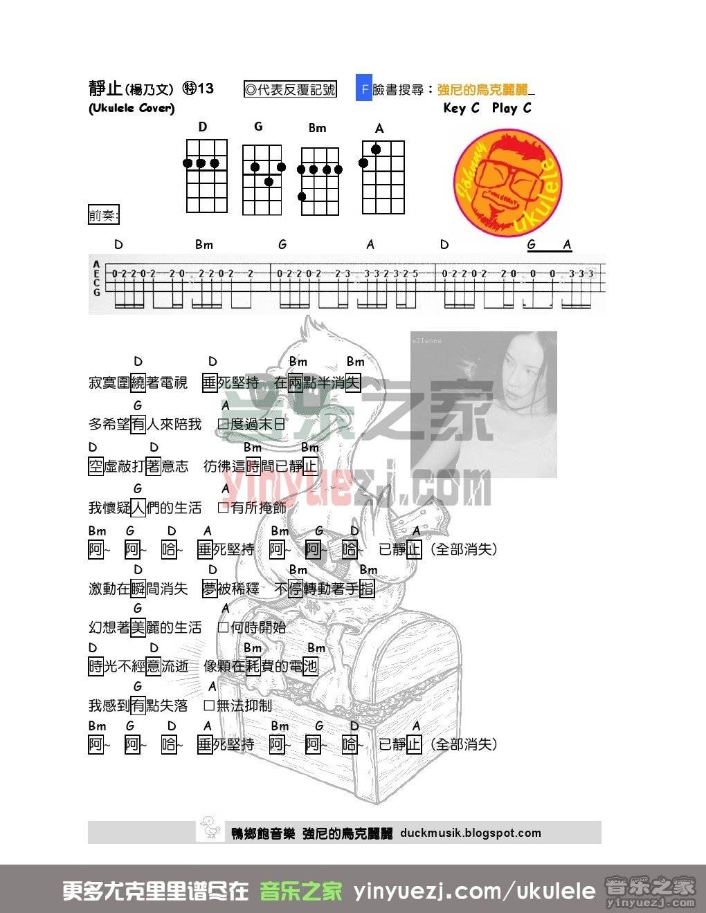 杨乃文《静止》尤克里里-C调弹唱谱...