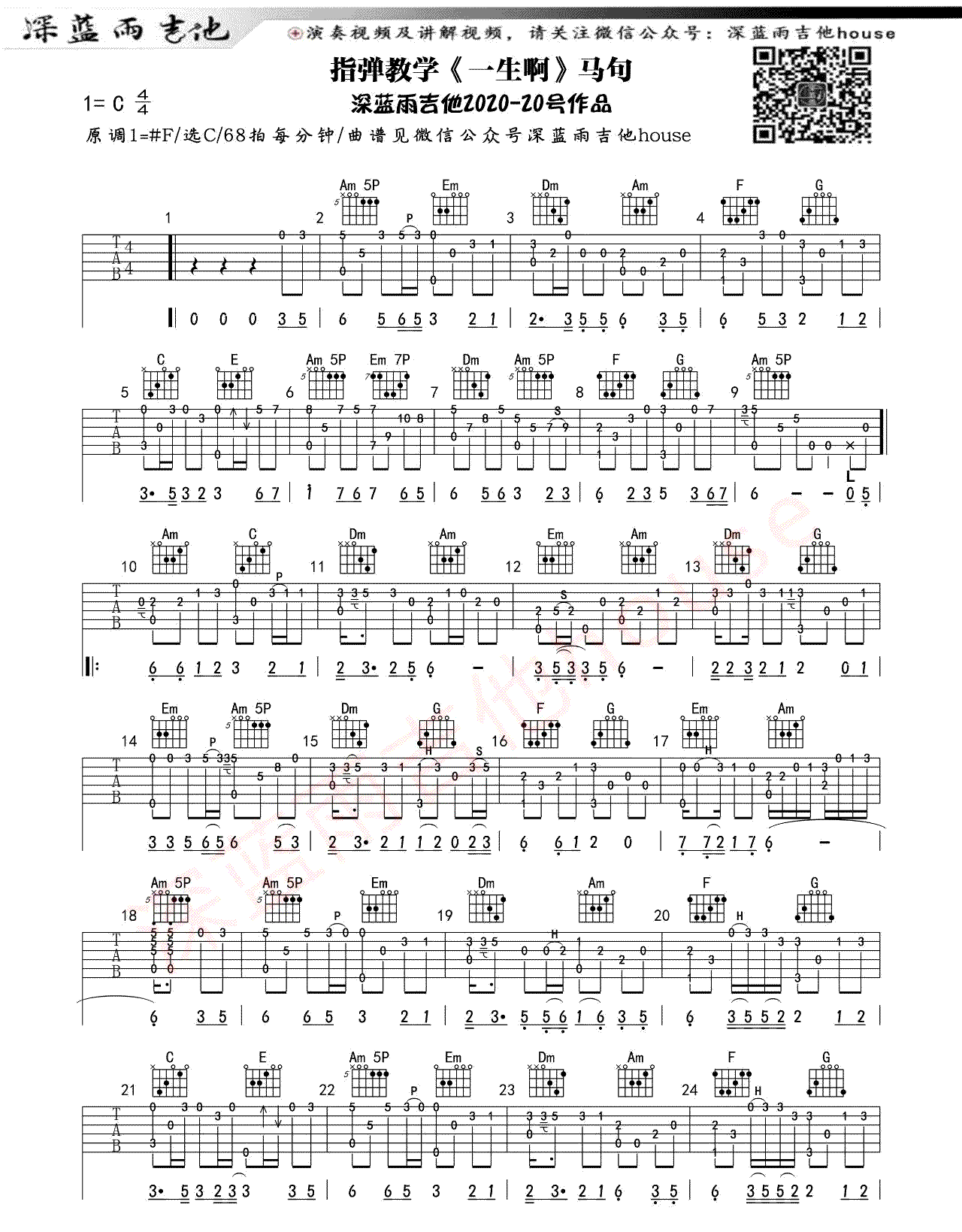 马句《一生啊吉他》吉他谱-C调指弹谱...