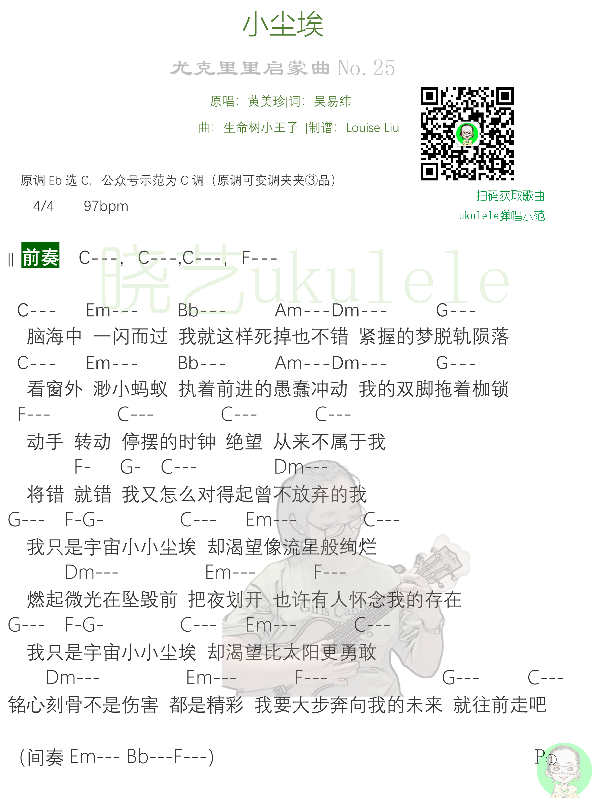 黄美珍《小尘埃》尤克里里-C调弹唱谱...