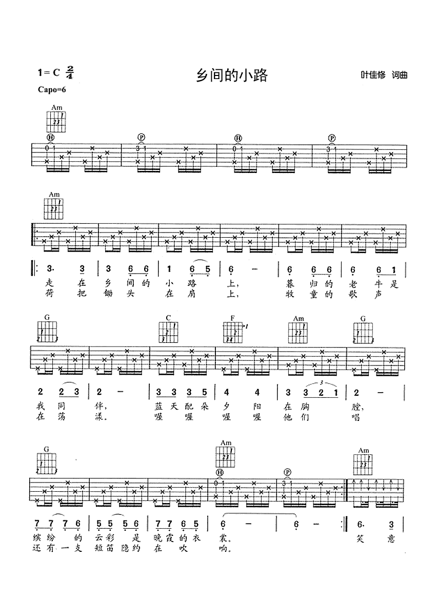吉他齐豫《乡间的小路》吉他谱_吉他弹唱谱