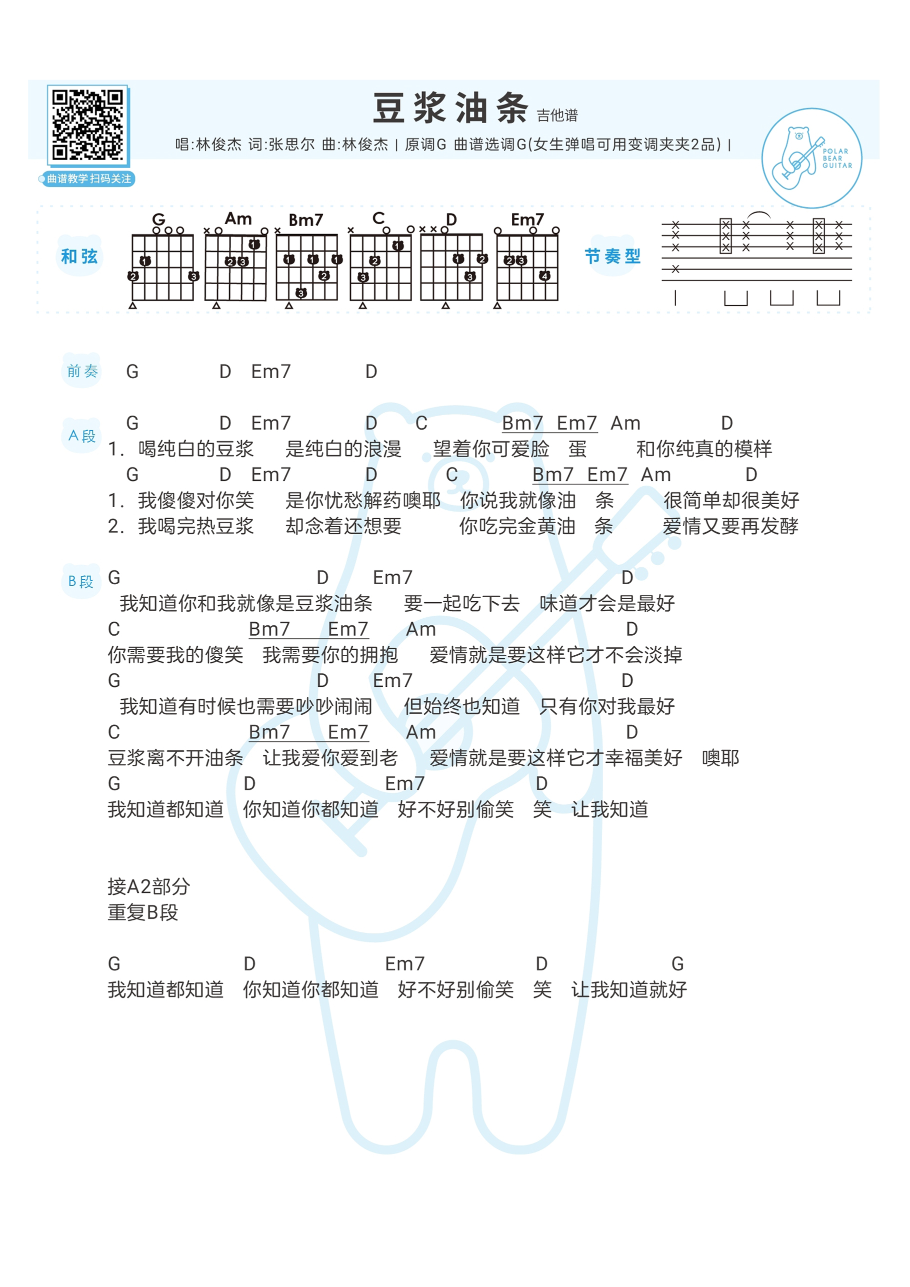 林俊杰《豆浆油条》吉他谱_G调吉他弹唱谱_和弦谱...