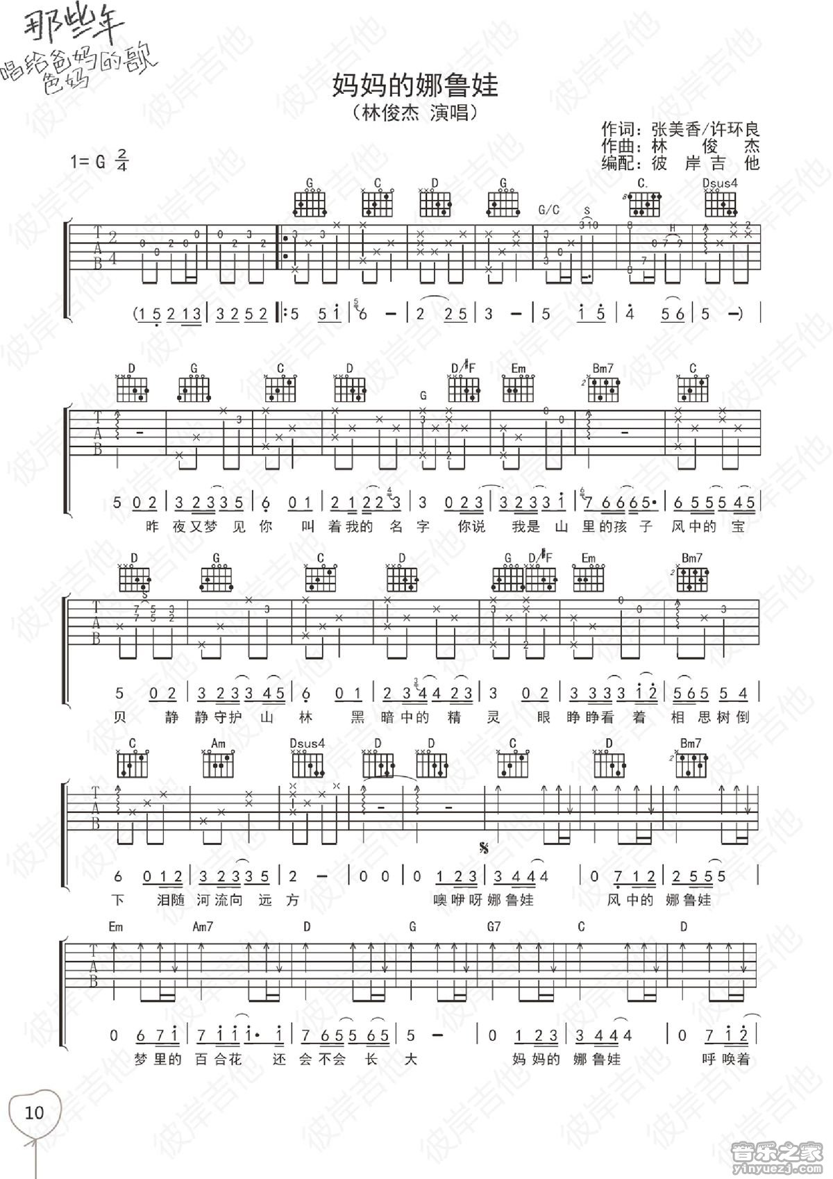 吉他林俊杰《妈妈的娜鲁娃》吉他谱_吉他弹唱谱_彼岸编配
