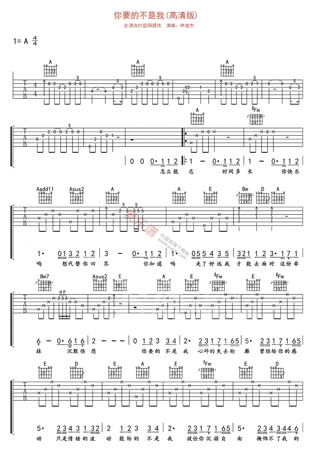 林俊杰《你要的不是我》吉他谱_A调吉他弹唱谱...
