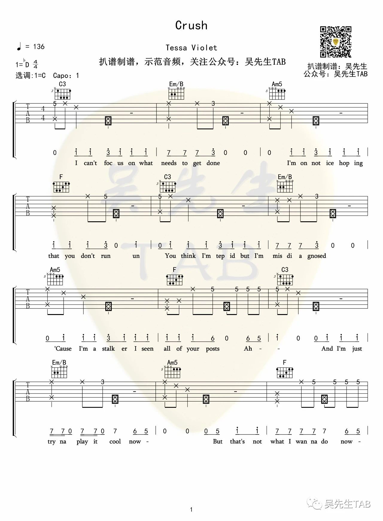 关于Crush的曲谱