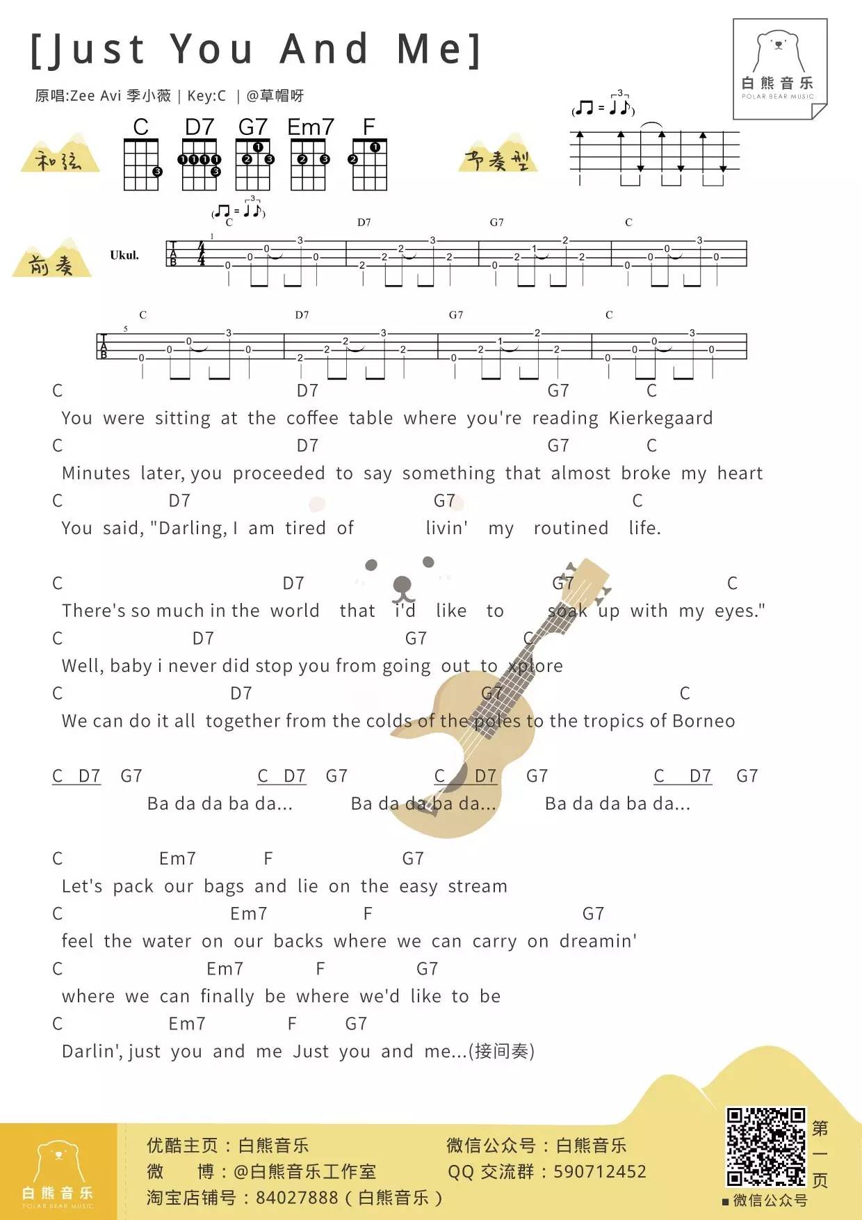 ZeeAvi《JustYouAndMe》尤克里里谱-C调弹唱谱...