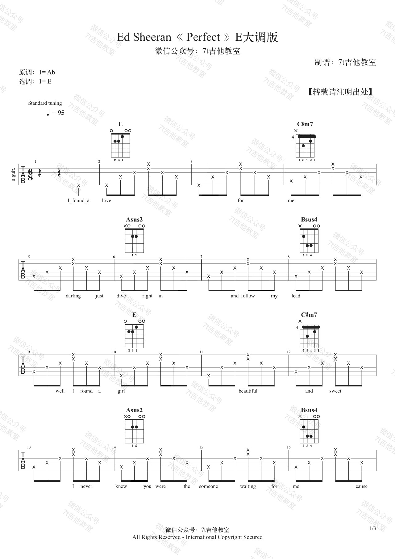 吉他EdSheeran《Perfect》吉他谱_吉他弹唱谱_7t吉他教室编配